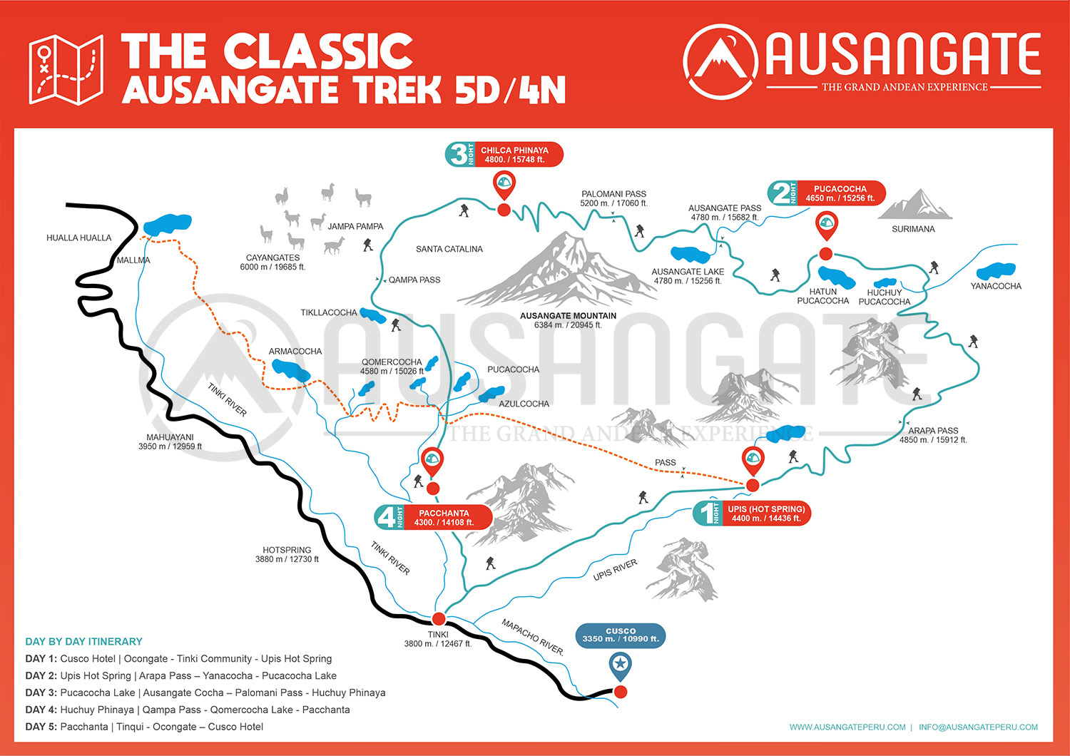 The "Ausangate Trek Classic 5 days" can leave any day of the week, from March through January. We do not run this trek in February because rainy season & maintenance.