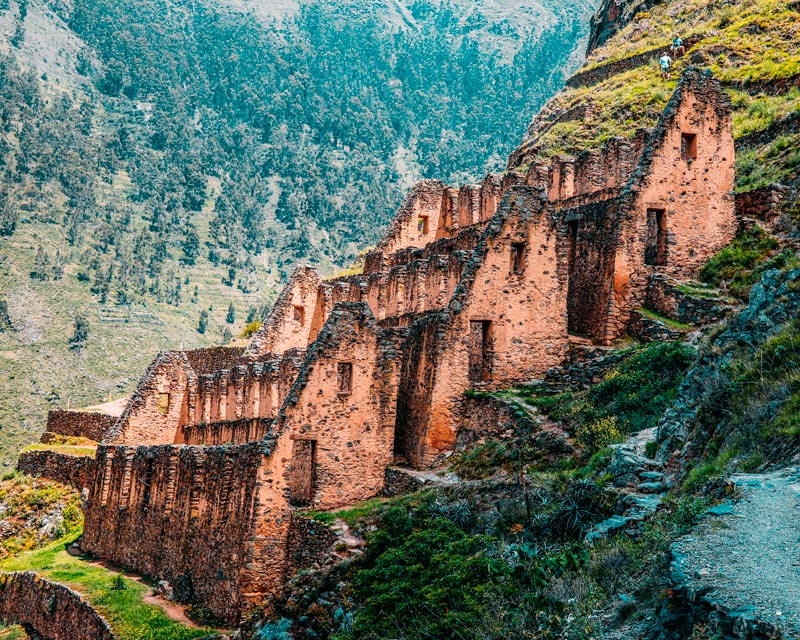 When we get there, we’ll enjoy our last hike to the Qolqas Inca (2,950 m / 9,678 f), old granaries from the Inca age located on a hill called Pinkuylluna. While we are there, you’ll have an impressive view of the archeological complex of Ollantaytambo. In the evening, we’ll have our last dinner and spend the night in that town.