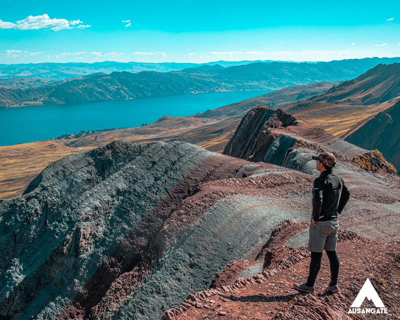 This mountain stands out for its sharp lines, perfectly sculpted by nature over millions of years. You’ll be able to see a variety of colors such as red, brown, yellow, green, magenta, ochre, and more. As you take in this stunning natural palette, you can also peek over the edge to get a better view of the impressive Langui Lake—over 15 kilometers long—and part of the Andes mountain range.